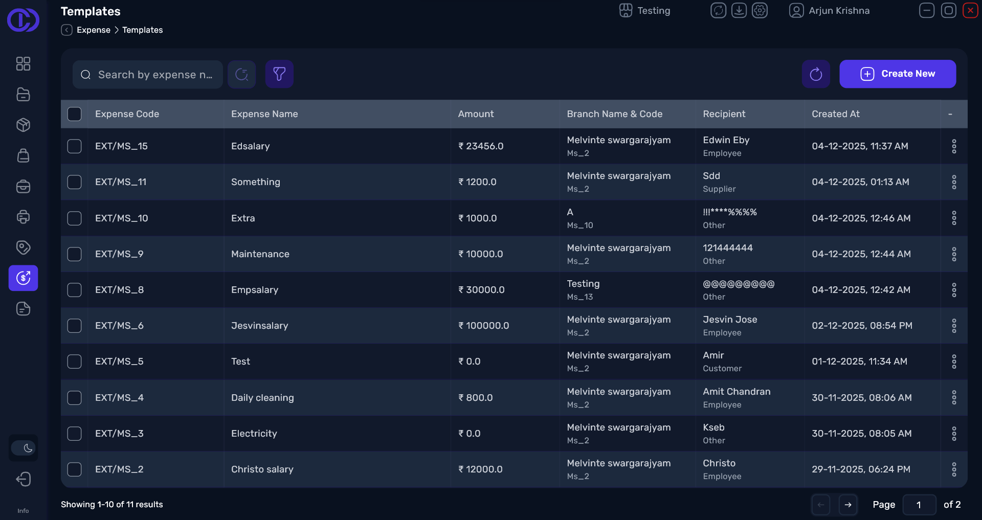 Click on the Templates tab within the Expenses module to see itemized and categorized expense details.